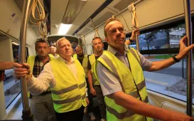 3 sierpnia 2023 roku odbył się pierwszy przejazd techniczny po całej nowej linii tramwajowej. W czwartkowy wieczór tramwaj przejechał trasę od pl. NOT do nowej pętli przy ul. Heweliusza. / fot. Sławomir KowalskiToruńska opieka przedszkolna 2023