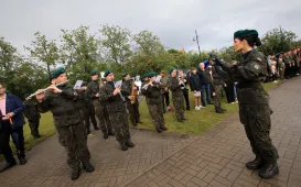 Zgodnie z ceremoniałem wojskowym i przy akompaniamencie Orkiestry Wojskowej z Torunia, w sobotę 29 lipca 2023 r. na placu apelowym Centrum Szkolenia Artylerii i Uzbrojenia w Toruniu przysięgę złożyło 54 ochotników projektu "Trenuj jak żołnierz". Fot. Agnieszka BieleckaToruńscy policjanci obchodzili swoje święto