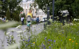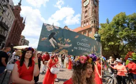 Na skwerze przy Alei Solidarności i Muzeum Etnograficznym można podziwiać łąki kwietne, a przy CKK Jordanki - pięknie kwitnące róże. Tak ukwiecony jest teren o nazwie Zielona Brama Gotyckiej Starówki. Fot. Agnieszka BieleckaPokaz fireshow grupy Synergy Art, 16.07.2023 r.