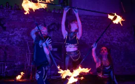 Na zakończenie 9. Festiwaly Teatrów Ulicznych w Fosie Zamkowej odbył się pokaz fireshow grupy Synergy Art. / fot. Agnieszka BieleckaRalph Kamiński i Sorry Boys w Fosie Zamkowej, 15.07.2023 r.