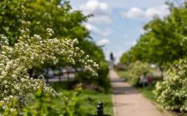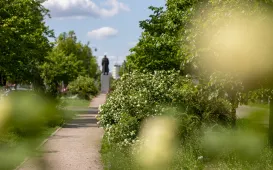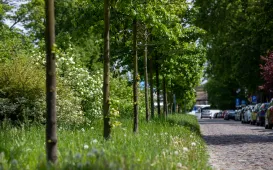 Idąc pasem pomiędzy jezdniami ul. Piastowskiej, ma się wrażenie, że to zielony tunel – taki jest efekt przeprowadzonych w 2017 roku nasadzeń drzew na tym odcinku. W 2018 roku zaś pojawiły się tam krzewy i byliny, a także elementy małej architektury. Fot. Agnieszka BieleckaPosiedzenie Rady Seniorów, 22.05.2023 r.