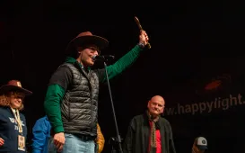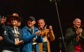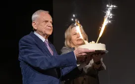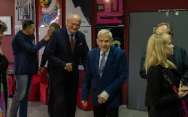 W Baju Pomorskim rozpoczęły się 37. Toruńskie Spotkania Teatrów Jednego Aktora. Podczas imprezy, która odbędzie się 19-21 maja 2023 r., zostanie pokazanych 9 spektakli. Inauguracja tegorocznych TSTJA była okazją do uhonorowania jego wieloletniego dyrektora festiwalu Wiesława Gerasa, który tego dnia świętował swoje 84. urodziny. Michał Zaleski nagrodził również zasłużonego toruńskiego grafika Edwarda Salińskiego, autora kilkudziesięciu plakatów teatralnych dla Baja Pomorskiego, w tym plakatów festiwali jednego aktora. Fot. Wojtek Szabelski