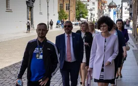 Miasto podejmuje starania o uzyskanie tytułu nadawanego przez UNICEF – Miasta Przyjaznego Dzieciom. We wtorek 9 maja 2023 r. poza podpisaniem porozumienia w tej sprawie, delegacja UNICEF Polska zwiedziła Toruń. / fot. Wojtek Szabelski