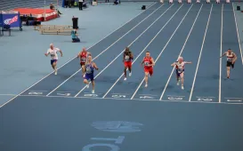 Od 25 marca do 1 kwietnia 2023 w Toruniu rozgrywane są 9. Halowe Mistrzostwa Świata w Lekkoatletyce. W środę 29 marca 2023 r. odbywały się konkurencje w hali Arena Toruń, m.in. skok w dal i biegi krótkie. Fot. Janusz Nath