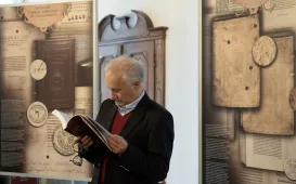 W Ratuszu Staromiejskim w hallu przed Salą Królewską Ratusza Staromiejskiego 18 lutego 2023 r. otwarta została uroczyście wystawa pt. „Ze wszech ksiąg najbardziej godna przeczytania... Wokół De revolutionibus". Fot. Wojtek Szabelski