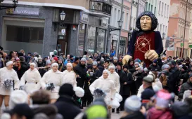 18 lutego 2023 r. na Rynku Staromiejskim odbyło się wydarzenie pod nazwą "Party u Kopernika", w ramach którego mieszkańcy obchodzili 550. rocznicę urodzin astronoma. Był specjalny tort, występ bębniarzy, parada. Fot. Sławomir KowalskiZe wszech ksiąg najbardziej godna przeczytania... Wokół De revolutionibus - otwarcie wystawy