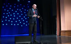 Prawne aspekty funkcjonowania samorządów były tematem konferencji samorządowej, jaka odbyła się 1 lutego 2023 r. w Centrum Innowacyjnej Edukacji. Gościem spotkania był minister ds. samorządu terytorialnego Włodzimierz Tomaszewski. Fot. Sławomir Kowalski