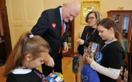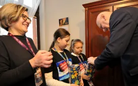 Przed niedzielnym (29 stycznia 2023 r.) finałem Wielkiej Orkiestry Świątecznej Pomocy wolontariuszki akcji zawitały tradycyjnie do Urzędu Miasta Torunia. Fot. Małgorzata LitwinZnakomici naukowcy o Mikołaju Koperniku