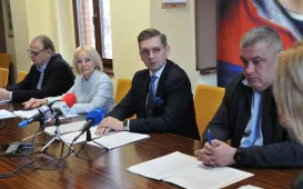 Powstanie ostatni, "toruński" odcinek trasy S10 ! Informacja o podpisaniu umowy w tej sprawie pomiędzy wykonawcą a Generalną Dyrekcją Dróg Krajowych i Autostrad została przekazana 24 stycznia 2023 r. w toruńskiej delegaturze Urzędu Wojewódzkiego, podczas konferencji z udziałem wicewojewody Józefa Ramlau i prezydenta Torunia Michała Zaleskiego. Fot. Małgorzata LitwinFerie 2023. Konferencja prasowa