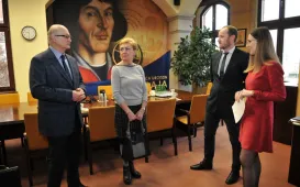 W dyskusji zorganizowanej z okazji jubileuszu 550. rocznicy urodzin Mikołaja Kopernika, która odbyła się w czwartek 26 stycznia 2023 r. w siedzibie Książnicy Kopernikańskiej, wzięli udział trzej znakomici naukowcy. Zdj. Wojtek SzabelskiSpotkanie Partnerskiej Inicjatywy Miast