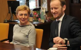 Z Urzędem Miasta Torunia żegnają się odchodzący na emeryturę pracownicy: Aleksandra Jasińska z Wydziału Obsługi Mieszkanców i Zbigniew Chętkowski z Wydziału Gospodarki Komunalnej. Fot. Małgorzata LitwinWolontariuszki WOŚP w Urzędzie Miasta Torunia