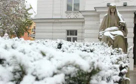 Zimowy plac Teatralny i skwer przy Muzeum Etnograficznym im. Marii Znamierowskiej-Prufferowej w Toruniu w obiektywie Adama Zakrzewskiego.