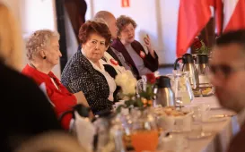 Tradycyjnie przed Świętem Niepodległości prezydent Michał Zaleski zaprosił toruńskich kombatantów do Ratusza Staromiejskiego. Uroczyste spotkanie 8 listopada 2022 r. w Sali Mieszczańskiej zgromadziło byłych żołnierzy Armii Krajowej i innych formacji wojskowych z czasów II wojny światowej, Sybiraków, osoby represjonowane oraz działaczy organizacji kombatanckich. Fot. Sławomir KowalskiPrezydentka w Urzędzie Miasta