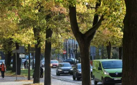 Liście przybrały żółte, pomarańczowe i czerwone barwy. Jesień w Toruniu trwa w najlepsze. Najlepiej to widać w parkach i na pasach zieleni. /fot. Lech KamińskiToruńska Jesień 2022 - Trasa Średnicowa