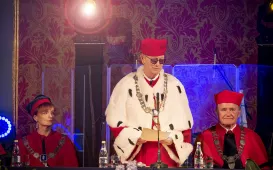 W dniu 3 października 2022 r. w auli Uniwersytetu Mikołaja Kopernika miała miejsce uroczysta inauguracja roku akademickiego 2022/3023. Fot. Wojtek SzabelskiInauguracja roku akademickiego 2022/2023 - złożenie kwiatów pod pomnikiem Mikołaja Kopernika