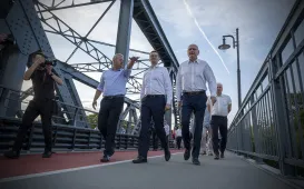 Rozbudowa mostu drogowego im. J. Piłsudskiego oraz zagospodarowanie Bulwaru Filadelfijskiego to toruńskie inwestycje, które w ostatnim czasie otrzymały rządowe wsparcie. Mówił o nich 21 lipca 2022 r. podczas wizyty w województwie kujawsko-pomorskim minister infrastruktury Andrzej Adamczyk. Fot. Adam Zakrzewski
