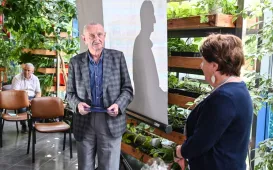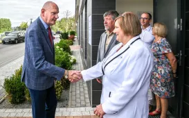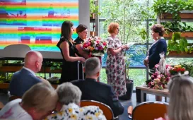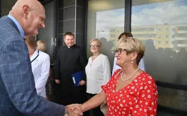 Na emeryturę po wielu latach pracy odchodzi Grażyna Śmiarowska, dyrektor Zakładu Pielęgnacyjno-Opiekuńczego im. ks. Jerzego Popiełuszki w Toruniu. 27 lipca 2022 r. oficjalnie pożegnali ją i złożyli podziękowania prezydent Torunia Michał Zaleski oraz przewodniczący Rady Miasta Marcin Czyżniewski. Fot. Lech KamińskiRóże na ul. Staszica