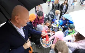 30 maja 2022 r. przed budynkiem urzędu przy ul. Wały Generała Sikorskiego 8 odbyła się konferencja prasowa dot. ogłoszenia wyników II naboru Funduszu Inwestycji Strategicznych. Toruń z rządowego programu otrzymał 65 mln zł na budowę szkoły przy ul. Strzałowej. Fot. Natalia PrzytarskaMuzyczne bukiety dla mam
