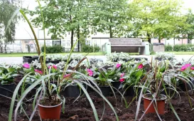 W maju 2022 r. rozpoczęło się obsadzanie kwiatami miejskich zieleńców w rejonie centrum miasta. Tylko w rejonie Zielonej Bramy zakwitnie ponad 4700 sztuk sadzonek kwiatów, m.in. cinerarii czyli starca, niecierpka, begonii, petunii, wilca i rozplenicy. Fot. Adam Zakrzewski