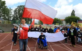 Dzisiaj, 21 maja 2022 roku na Stadionie Miejskim odbywa się Toruńska Olimpiada Osób z Niepełnosprawnościami. Licznie przybyłych zawodników przywitał prezydent Torunia Michał Zaleski. Fot. Sławomir KowalskiPiernikalia 2022