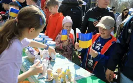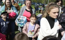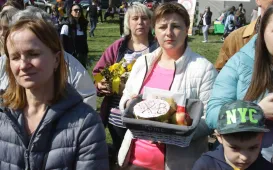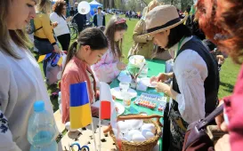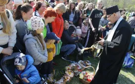 Podczas odbywającego się w dn. 23 kwietnia 2022 r. pikniku "Poznajmy się", z okazji przypadających w tym czasie prawosławnych Świąt Wielkanocnych, nastąpiło tradycyjne poświęcenie pokarmów. Na gości z Ukrainy czekały koszyczki, przygotowane przez Zespół Szkół Gastronomiczno-Hotelarskich, które poświęcił ks. Mikołaj Hajduczenia, proboszcz parafii prawosławnej pw. św. Mikołaja w Toruniu. Fot. Adam Zakrzewski„Poznajmy się” – piknik rodzinny