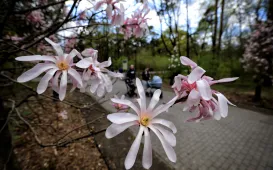 Magnolie, róże i rododendrony zaczynają kwitnąć w Parku Miejskim w tzw. Ogrodach Marysieńki. Nasadzenia wykonane zostały w ramach budżetu obywatelskiego. Fot Sławomir KowalskiKonferencja prasowa - Nagroda Lindego 2022