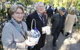 1 listopada 2021 r. po raz dziewiętnasty odbyła się kwesta na cmentarzu św. Jerzego, organizowana przez Urząd Miasta i Towarzystwo Miłośników Torunia. Znani torunianie i goście miasta zbierali datki na odnowę zabytkowych pomników najstarszej toruńskiej nekropolii. Prezydent Torunia Michał Zaleski złożył też kwiaty na gromach honorowych obywateli i osób zasłużonych dla miasta . Fot. Małgorzata LitwinKwesta na cmentarzu św. Jerzego