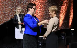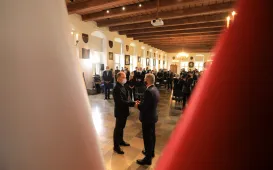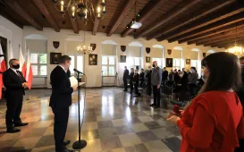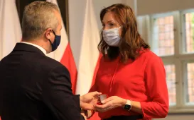 W dniu 19 października 2021 r. w Ratuszu Staromiejskim miała miejsce uroczystość wręczenia odznak honorowych "Za zasługi dla ochrony zdrowia" przyznanych przez ministra zdrowia Adama Niedzielskiego. Medale wręczył wojewoda kujawsko-pomorski Mikołaj Bogdanowicz, w uroczystości udział wziął prezydent Michał Zaleski. Fot. Sławomir KowalskiWręczenie certyfikatów Made in Toruń, 18.10.2021