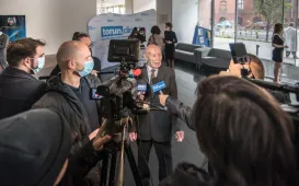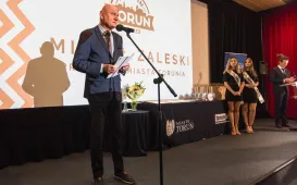 14 firm odebrało w poniedziałek 18 października 2021 r. certyfikat znaku jakości Made in Toruń. Uroczystość odbyła się w Kinie Centrum w CSW, a certyfikaty wręczył prezydent Michał Zaleski. Wśród przedsiębiorstw wyróżnionych statuetkami są m.in. start-up’yzajmujące się technologiami nanowęglowymi, firmy z branż paliwowej, medycznej, czy programistycznej. Na liście są też szkoła językowa, centrum nurkowe, pralnia chemiczna czy firma consultingowa. Fot. Lech KamińskiInauguracja roku WSKSiM