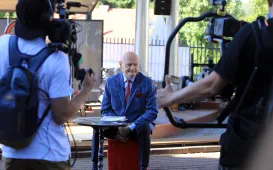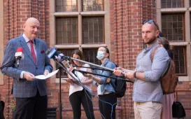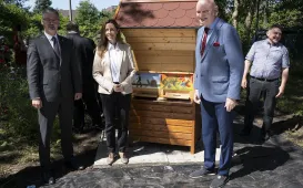 W środę 16 czerwca 2021 r. w Toruniu gościła ekipa programu Onet Rano. Na wybudowanej niedawno plenerowej Scenie Szekspirowskiej Baja Pomorskiego red. Beata Tadla rozmawiała z prezydentem Michałem Zaleskim o atrakcjach, jakie Toruń przygotował na lato dla mieszkańców i turystów. Podczas rozmowy, którą widzowie mogli śledzić w internecie, pokazywane były wspaniałe widoki Torunia nakręcone z drona. Fot. Sławomir KowalskiSłoweński ul w Grębocinie
