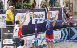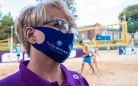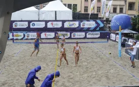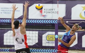 26 lipca 2020 r. odbył się finał Plaży Gotyku - jak co roku na Rynku Nowomiejskim imprezę siatkarską zakończył Turniej Gwiazd Kobiet i Mężczyzn. Zwycięskim parom gratulacje złożył oraz wręczył puchary zastępca prezydenta Torunia Zbigniew Rasilewski. Fot. Adam Zakrzewski