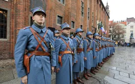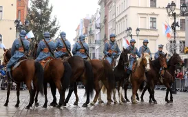 18 stycznia 2020 r. na Rynku Staromiejskim odbyła się uroczystość patriotyczna z okazji 100. rocznicy powrotu Torunia do wolnej Polski. W wydarzeniu udział wziął prezydent Torunia Michał Zaleski. Fot. Wojciech SzabelskiRekonstrukcja przywitania wojsk z 1920 r.