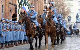 18 stycznia 2020 r. z okazji obchodów 100-lecia powrotu naszego miasta do macierzy, przy dworcu Toruń Miasto odbyła się rekonstrukcja powitania wojsk polskich. Fot. Wojciech SzabelskiZłożenie kwiatów pod pomnikiem gen. Hallera