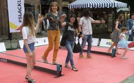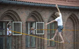 Slackline Games, czyli pokazy najlepszych linoskoczków świata – to jedna z atrakcji Dni Torunia. 22 czerwca 2017 roku swoje umiejętności śmiałkowie zaprezentowali na linie rozciągniętej pomiędzy Ratuszem a Dworem Artusa. Fot. Wojtek SzabelskiNagrody Prezydenta Miasta Torunia za 2016 rok