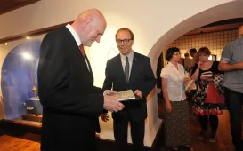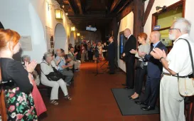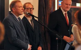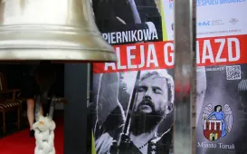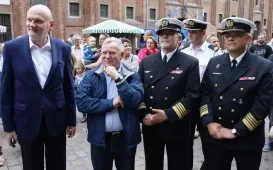 Profesor Marian Filar i muzyk Tomasz Organek odsłonili w piątek 23 czerwca 2017 r. swoje katarzynki w Piernikowej Alei Gwiazd. Piernikową Aleję Gwiazd zainicjowali wspólnie w 2003 r. Urząd Miasta Torunia oraz producent toruńskich pierników - Fabryka Cukiernicza "Kopernik". W płytach pasażu przed Dworem Artusa znajduje się już kilkanaście mosiężnych tabliczek w kształcie piernika katarzynki - z autografami znanych osób: aktorów, muzyków, naukowców, sportowców, polityków czy pisarzy. Łączy ich Toruń - jako miejsce urodzenia, miasto edukacji lub początków kariery. Fot. Adam ZakrzewskiToruńskie obchody 95-lecia Akademii Marynarki Wojennej