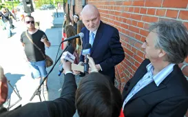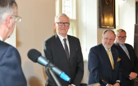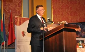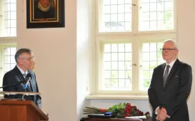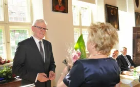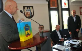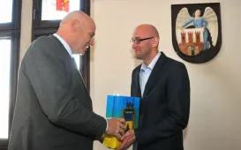 Świętujący 45-lecie pracy zawodowej prof. dr hab. Grzegorz Goździewicz odznaczony medalem honorowym prezydenta Torunia Thorunium. Michał Zaleski wręczył odznaczenie wybitnemu prawnikowi 17 maja 2017 r., podczas spotkania jubileuszowego w Ratuszu Staromiejskim, połączonego z inauguracją XXI Zjazdu Katedr i Zakładów Prawa Pracy i Ubezpieczeń Społecznych. Fot. Małgorzata LitwinSamorządowcy z Ukrainy w Toruniu