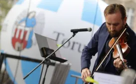 Ukraiński skrzypek Oleksandr Bozhyk ze swoim big bandem zachwycił melomanów, którzy 2 maja 2017 r. pojawili się na Rynku Staromiejskim. Bozhyk wystąpił w Toruniu w ramach PROBALTIKI. Artysta zaprezentował szeroki repertuar - od klasyki (Vivaldi, Brahms), przez filmowe evergreeny po autorskie kompozycje. Umiejętności ukraińskiego wirtuoza skrzypiec zyskały ogromny aplauz i rozgrzały publiczność. Koncert odbył się pod patronatem Przewodniczącego Rady Miasta Torunia, Marcina Czyżniewskiego. Fot. Adam ZakrzewskiŚwięto Flagi Rzeczypospolitej w Toruniu 2017