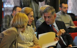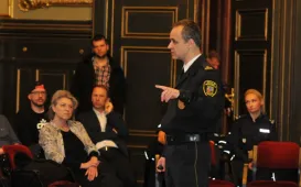 O tym, jak zwiększyć bezpieczeństwo w Toruniu, szczególnie w weekendy i w godzinach wieczornych i nocnych, rozmawiano 4 maja 2017 r. w Dworze Artusa na spotkaniu przedstawicieli miasta, służb mundurowych i przedsiębiorców prowadzących działalność na starówce. Spotkanie zostało zorganizowane przez Biuro Toruńskiego Centrum Miasta. Fot. Małgorzata LitwinI Toruńskie Forum Wiślane