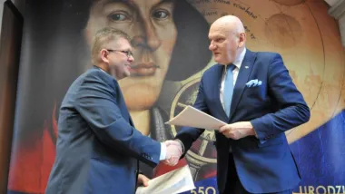 Prezydent Paweł Gulewski odebrał potwierdzenie zawarcia umowy dla projektu pn. "Rozbudowa ul. Sobieskiego poprzez budowę drogi rowerowej na odcinku od pl. Pokoju Toruńskiego do ul. Żółkiewskiego w Toruniu".