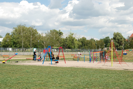 Do dyspozycji dzieci i młodzieży są też stoły do tenisa stołowego. Wakacyjnego klimatu plaży dodają również palmy.