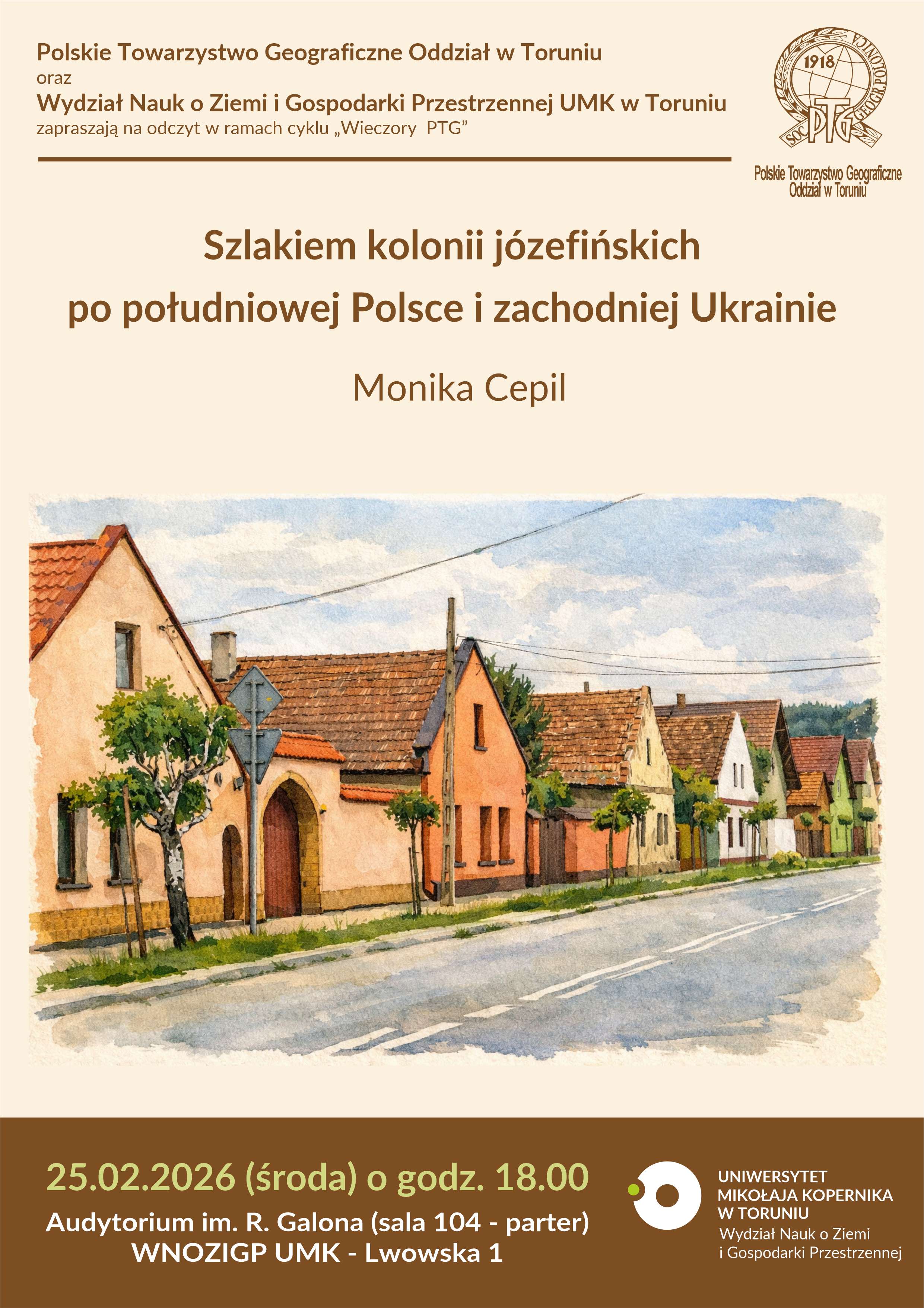 Doświadczenia naukowe prelegentki Moniki Cepil zdobyte podczas badań prowadzonych nad pracą doktorską. Wyjazdy odbywały się w latach 2017-2021. Podczas prowadzenia badań naukowych odwiedzono kolonie józefińskie zlokalizowane w województwach małopolskim i podkarpackim w Polsce oraz w obwodach lwowskim i iwanofrankiwskim na Ukrainie. Wystąpienie obejmie informacje na temat kolonizacji józefińskiej m.in. aspekty historyczne i dziedzictwa kulturowego. Będzie mowa o przygodach podczas prowadzenia badań terenowych. Prelegentka podzieli się również swoimi refleksjami z odbytych wyjazdów naukowych.