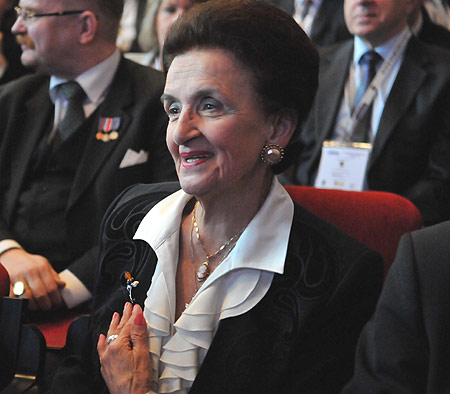 Karolina Kaczorowska, wdowa po ostatnim prezydencie RP na uchodźstwie Ryszardzie Kaczorowskim, otrzymała od prezydenta Torunia Michała Zaleskiego broszkę z bursztynem