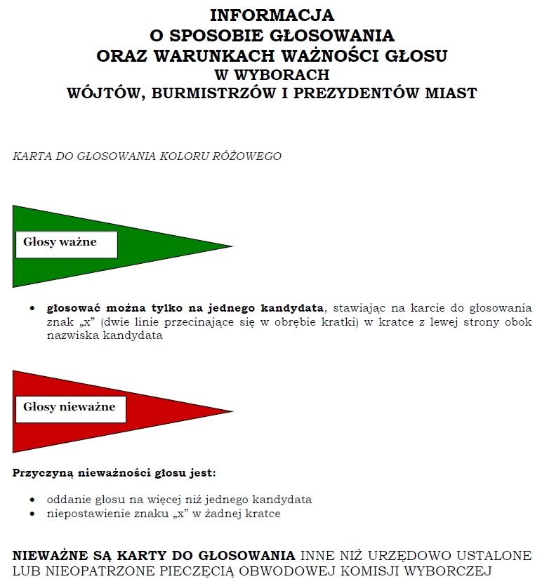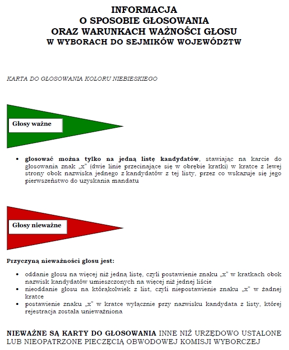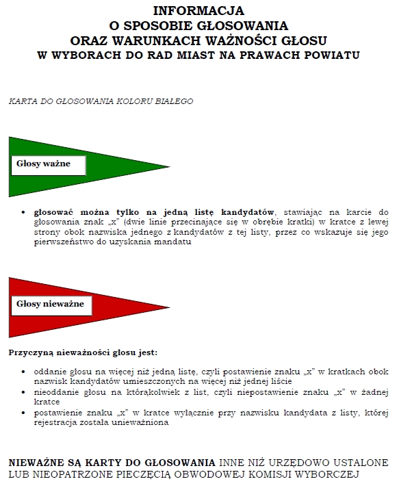 PKW przedstawiła wzory informacji o sposobie głosowania i warunkach ważności głosu w wyborach do rad gmin, rad powiatów, sejmików województw oraz w wyborach wójtów, burmistrzów i prezydentów miast.