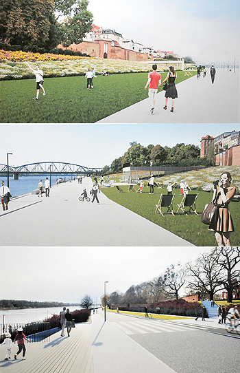 Ostatecznie wygrał projekt zespołu Riegler Riewe Architekci Sp. z o.o. z Katowic, który został doceniony przez jury za jednorodną formę terenu zieleni podbudowującą miejski krajobraz starówki i dającą szanse mieszkańcom na samodzielne wprowadzanie różnych form aktywności. Koncepcja uznanej katowickiej pracowni, która ma na swoim koncie wiele udanych realizacji, w niewielkim stopniu ingeruje w dotychczasowy wygląd Bulwaru Filadelfijskiego. Głównym czynnikiem formującym przestrzeń ma być zieleń o różnych stopniach wysokości - od krzewów i klombów wypełnionych kwiatami i pachnącymi roślinami leczniczymi po szeroki trawnik, która ma się stać miejscem aktywności i rekreacji mieszkańców. W kilku miejscach projektanci przewidzieli proste formy architektoniczne na przedłużeniu ulic starówki: schody z terasowymi zjazdami dla niepełnosprawnych, platformy widokowe oraz zamknięte i otwarte pawilony, które będą mogły być wynajęte pod funkcje gastronomiczne. Koncepcja zakłada też ograniczenie ruchu na bulwarze poprzez zwężenie jezdni i nadanie priorytetu dla ruchu pieszych i rowerzystów. Na plus za projektem przemawiało także to, że nie narusza linii brzegowej i nie przewiduje przebudowy nabrzeża, niedawno przez miasto wyremontowanego.