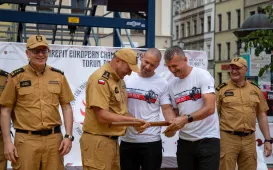 Toruń był przystankiem akcji "Wspólnie dla Wisły", która jest nie tylko wyzwaniem sportowym, ale ma też walory edukacyjne. Uczestnicy płyną z Baraniej Góry, przez Kraków i Toruń, do Gdańska. 29 czerwca 2024 r. Smocza Łódź wypłynęła z Przystani Toruń. W wydarzeniu wzięli udział Halina Pomianowska, dyrektor Wydziału Środowiska i Ekologii oraz Władysław Majewski, prezes Toruńskich Wodociągów. Zdjęcia: © UMT 2024, autor: Agnieszka Bielecka, licencja: CC BY-NC 4.0Mistrzostwa Polski o tytuł "Najtwardszego strażaka", 28.06.2024 r.