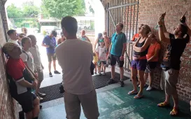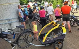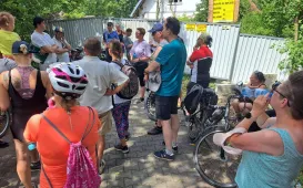 Uczestnicy Historycznego Rajdu Rowerowego, który odbył się 29 czerwca 2024 r., poznawali dzieje Torunia z perspektywy rowerowego siodełka. Rowerzyści odwiedzili Rubinkowo, Fort IV, toruńską rakarnię i tzw. Wiesiołki. Fot. © UMT 2024, autor: Stowarzyszenie GoSport, licencja: CC BY-NC 4.0