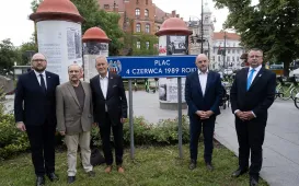 Bohaterowie czasów „Solidarności” i uczniowie toruńskich liceów wspólnie uczcili 35. rocznicę pierwszych wolnych wyborów parlamentarnych 4 czerwca 1989 r. Marszałek Województwa Kujawsko-Pomorskiego Piotr Całbecki i Prezydent Miasta Torunia Paweł Gulewski zaprosili do wspólnego świętowania bohaterów tamtych czasów i młodzież toruńskich liceów: I, IV, VI i X LO. Fot. Wojtek Szabelski