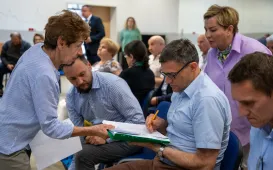 4 czerwca 2024 r. prezydent Paweł Gulewski spotkał się w SP nr 35 z przedstawicielami Rad Okręgów: Bielawy-Grębocin, Kaszczorek i Czerniewice. Fot. Agnieszka BieleckaW rocznicę wyborów 4 czerwca