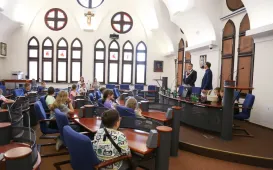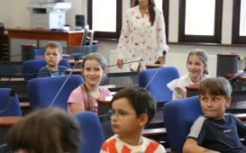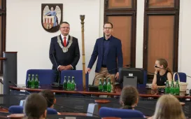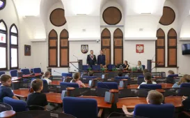 5 czerwca 2024 r. Urząd Miasta Torunia odwiedzili uczniowie klasy 3b ze Szkoły Podstawowej nr 24 im. Bohaterów Września 1939. Spotkali się z nimi Prezydent Miasta Torunia Paweł Gulewski, Przewodniczący Rady Miasta Torunia Łukasz Walkusz i radny Michał Rzymyszkiewicz. / fot. Paula GałązkaSpotkanie prezydenta Pawła Gulewskiego z Radami Okręgów Bielawy-Grębocin, Kaszczorek i Czerniewice