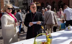 30 marca 2024 r. na Rynku Staromiejskim w Toruniu odbyło się święcenie pokarmów z udziałem biskupa toruńskiego Wiesława Śmigla oraz prezydenta miasta Michała Zaleskiego. / fot. Agnieszka BieleckaLewoskręt z ulicy Poznańskiej w ulicę Prüfferów, 27.03.2024 r.